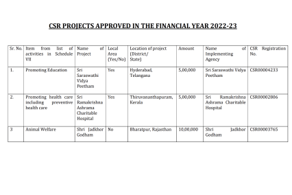Read More CSR PROJECTS APPROVED IN THE FINANCIAL YEAR 2022-23